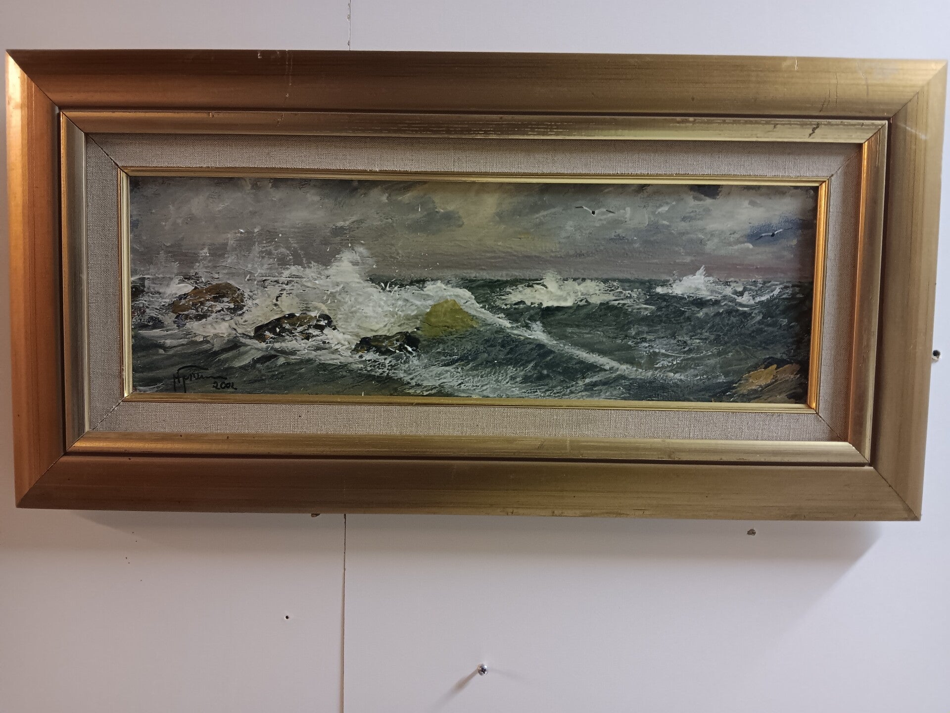 Maalaus 16x50 cm. Kehyksissä 33x67 cm.